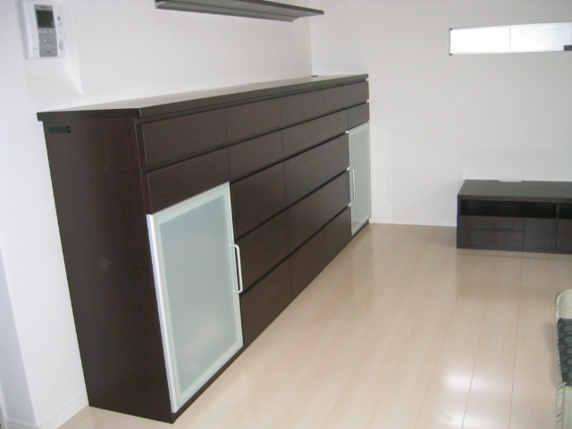 夏ごろから打ち合わせが始まり 大変お待たせしましたが お客様から「待った甲斐がありました」という お言葉をいただき気に入ってもらえて喜んでいます 写真では良く分かりませんが 現物はからリ迫力があります かなり大きなサイドボード W.2720 x D.420 x H.1100 オーク材柾目染色塗装 TVボード(大型液晶テレビを設置予定) W.1800 x D.520 x H.350 オーク材柾目染色塗装 大阪府豊中市 K様 サイドボード&TVボード |