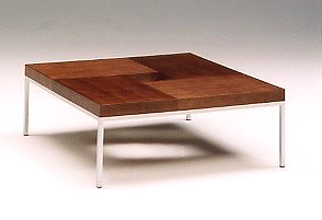 木目方向がクロスしていて 天板中央に200角の穴が開いている 天板 50厚 脚 スチールアルミ色 そうなんです、真ん中に穴が開いているテーブルです 1000 x 1000 x h.380 リビングテーブル ST-LS 1000 |