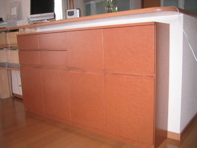 夏ごろから打ち合わせが始まり 大変お待たせしましたが お客様から「待った甲斐がありました」という お言葉をいただき気に入ってもらえて喜んでいます 写真では良く分かりませんが 現物はからリ迫力があります かなり大きなサイドボード W.2720 x D.420 x H.1100 オーク材柾目染色塗装 TVボード(大型液晶テレビを設置予定) W.1800 x D.520 x H.350 オーク材柾目染色塗装 大阪府豊中市 K様 サイドボード&TVボード |
